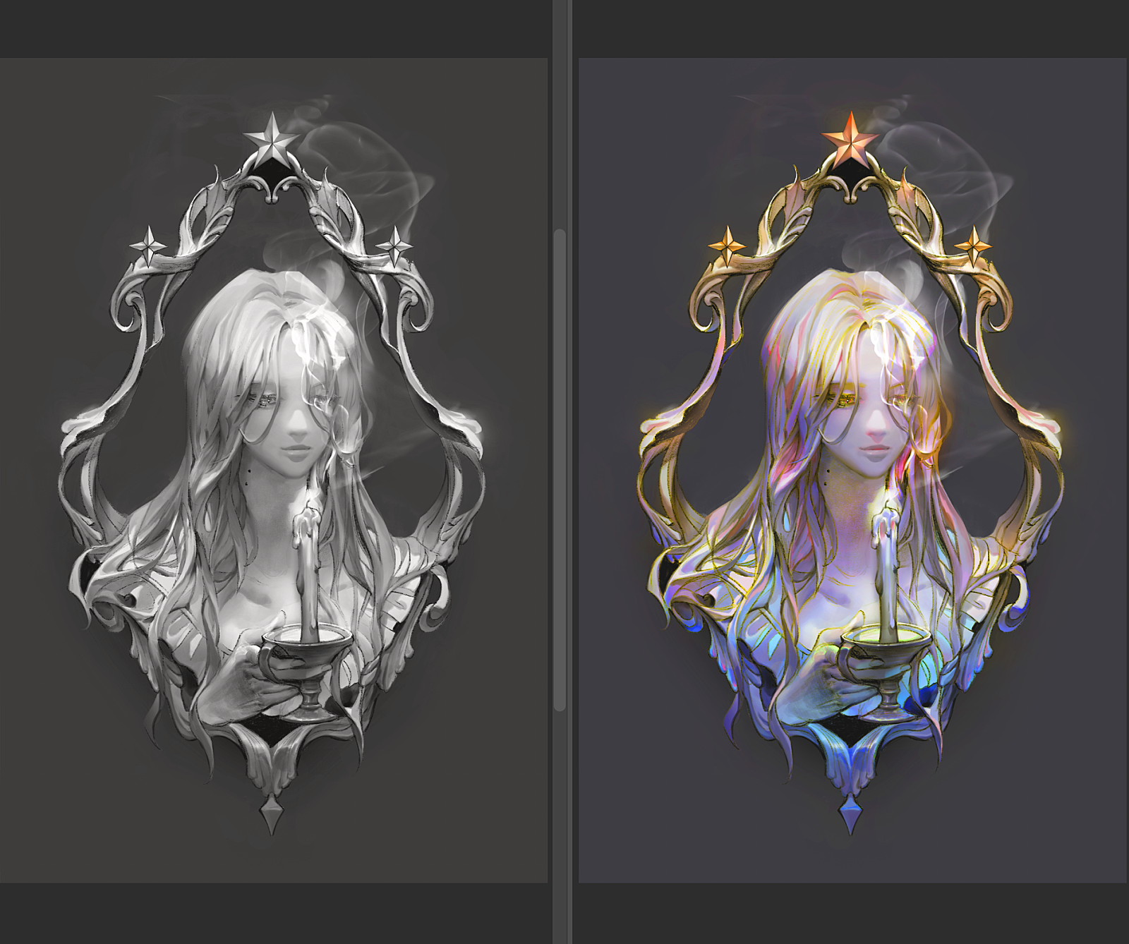 포토샵에서는 창을 별도로 두고 한 쪽의 창을 흑백으로 바꿔서